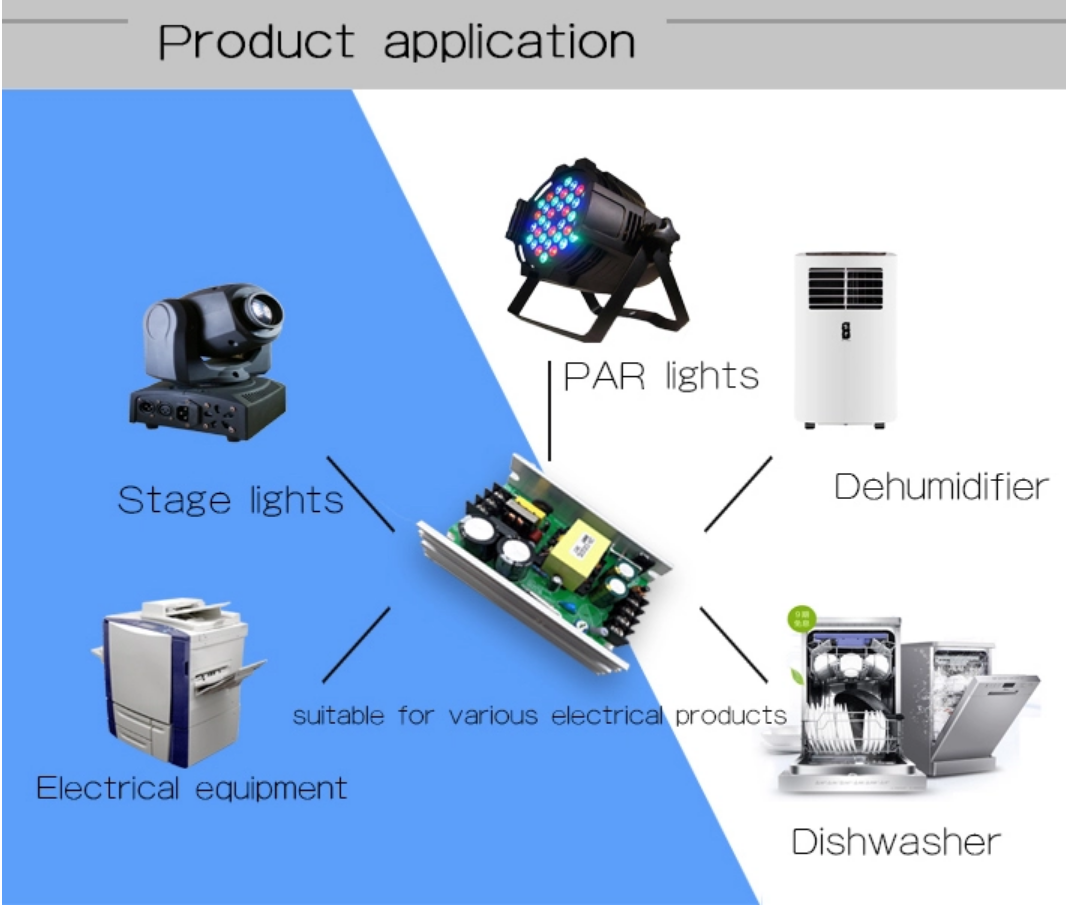With high reliability,105℃long life capacitor,can withstand 300VAC,input voltage 5 seconds without damage